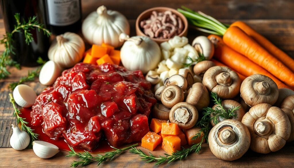 Making a delicious Beef Bourguignon in your Instant Pot needs the right ingredients. Each part is crucial for a true French dish. Let’s look at what makes your instant pot beef burgundy recipe special and your burgundy beef in instant pot unforgettable.
