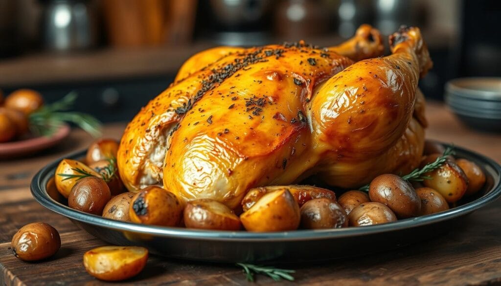 These international recipes show the versatility of roasted chicken and potatoes. Whether you’re in the mood for the vibrant Mediterranean flavors or the cozy French countryside, these dishes will delight your taste buds. They’ll transport you to new culinary adventures.