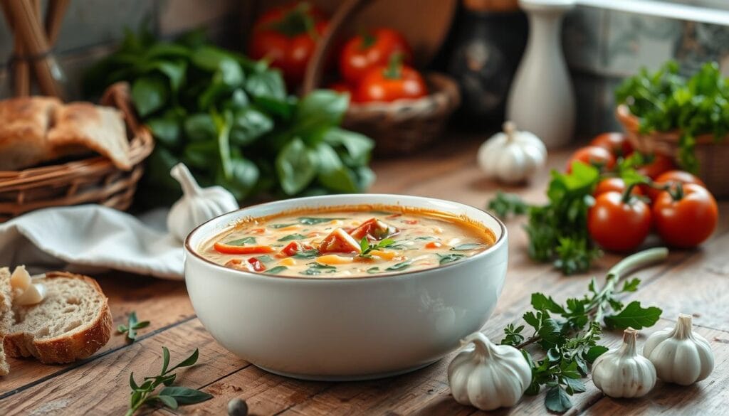 Welcome to the world of Olive Garden soups. Every bowl is a delightful experience, filled with Italian tradition. Since 1982, Olive Garden has been a key part of Americanized Italian food. They offer soups for all tastes and dietary needs.
